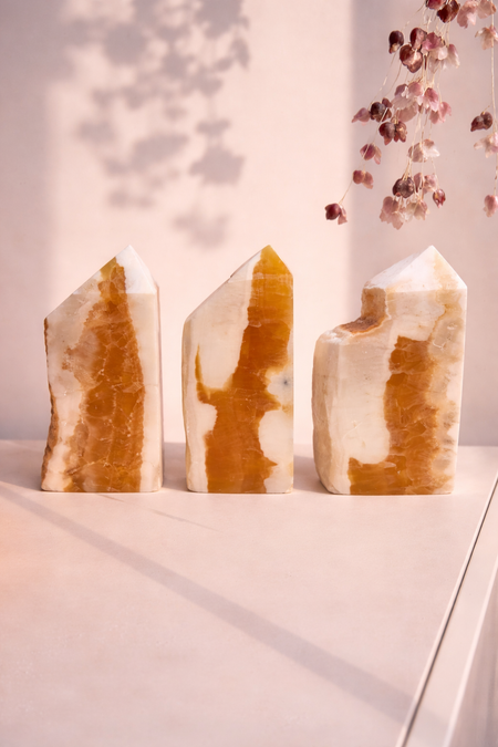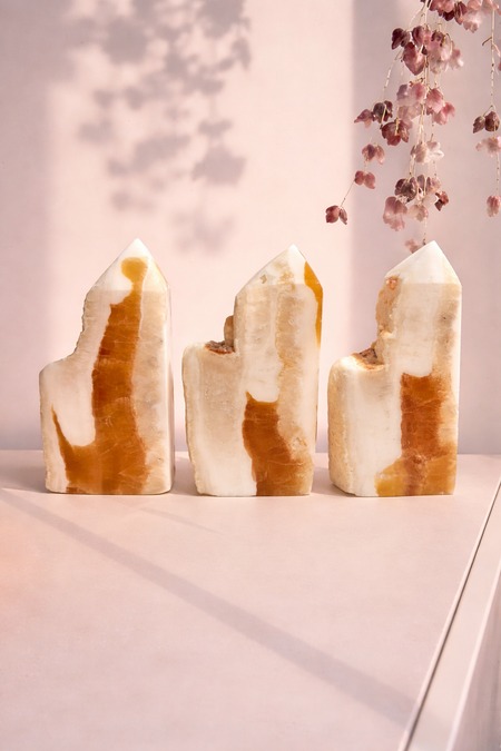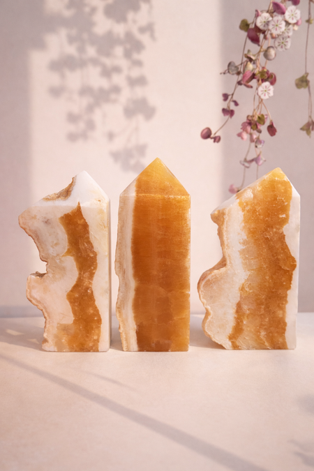 Orange Calcite Towers with Raw Edge
