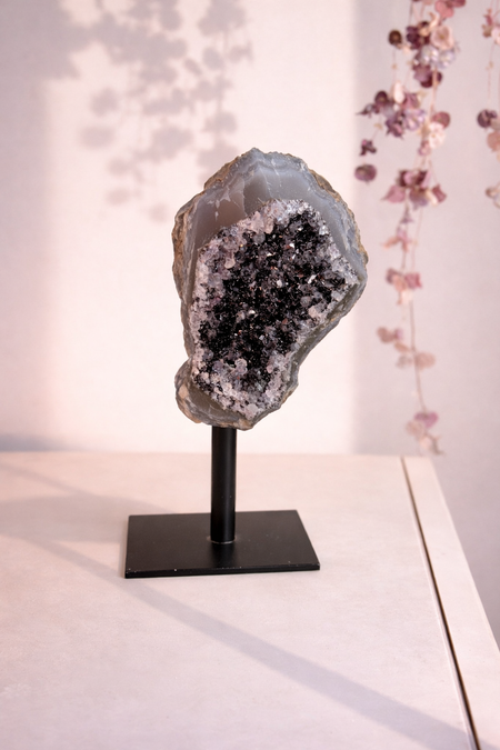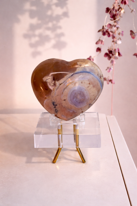 Pink Flower Agate Heart
